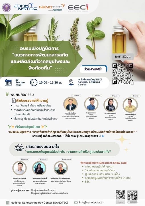 อบรมเชิงปฏิบัติการ “แนวทางการพัฒนาสารสกัดและผลิตภัณฑ์จากสมุนไพรและพืชท้องถิ่น”