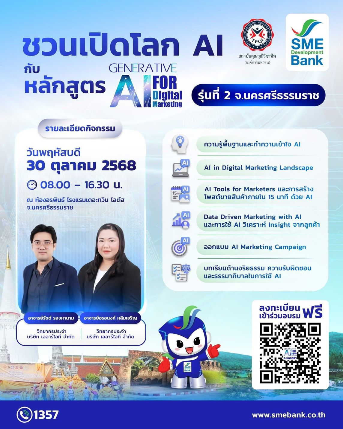 เปิดโลก AI พลิกเกมการตลาดดิจิทัล!สถาบันคุณวุฒิวิชาชีพ ร่วมกับ SME D Bankชวนผู้ประกอบการจังหวัดตรัง ร…