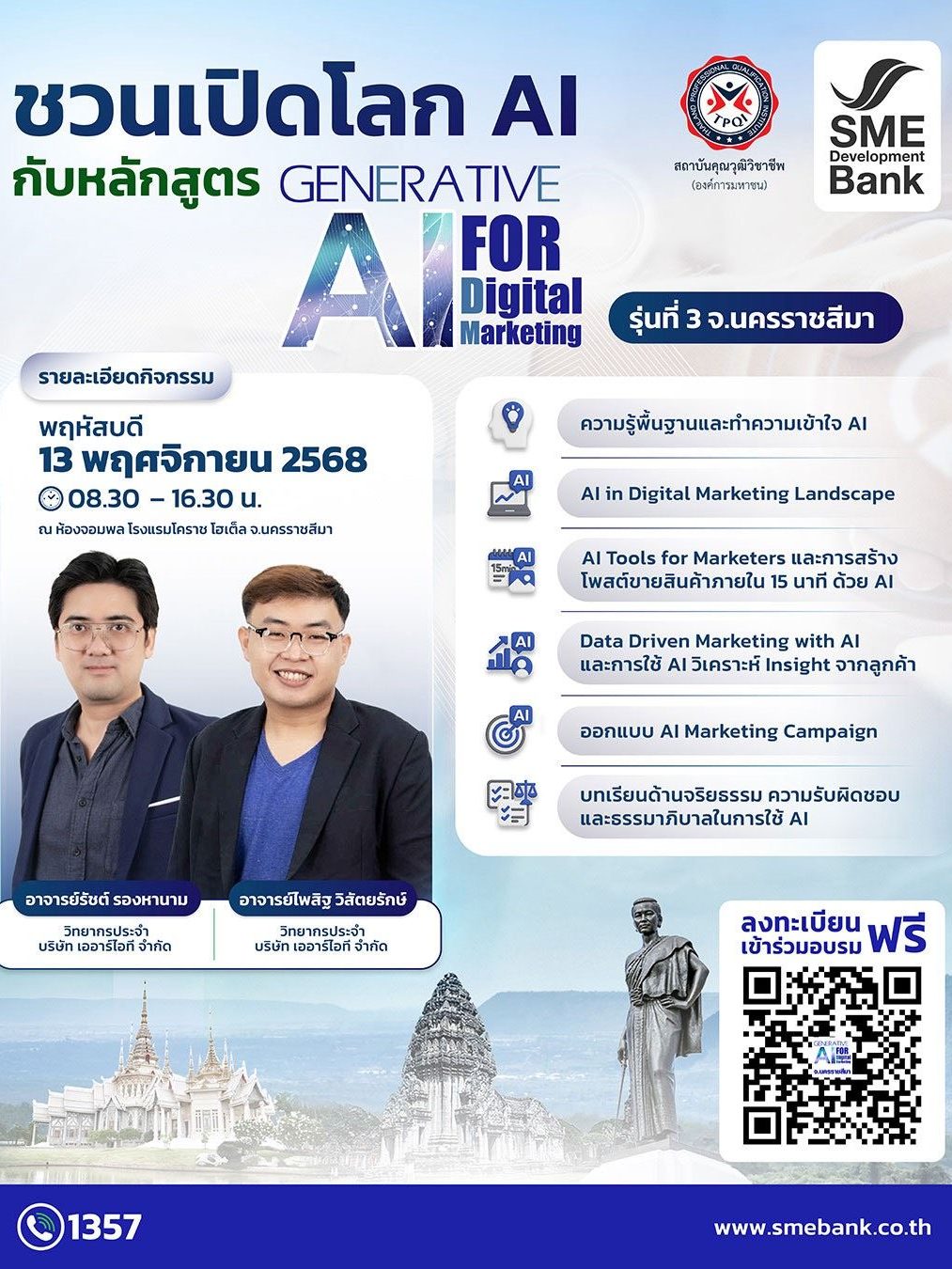 ข่าวประชาสัมพันธ์จ้า ได้เวลา SME D Bank ยกทัพไปเมือง พิษณุโลก!! กับหลักสูตร Generative AI for…