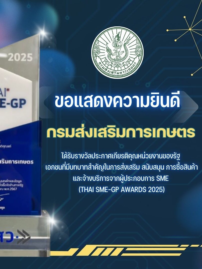 รางวัลประกาศเกียรติคุณหน่วยงานของรัฐ เอกชนที่มีบทบาทสำคัญในการส่งเสริมสนับสนุนการซื้อสินค้า และจ้างบริการจากผู้ประกอบการ SME ( THAI SME-GP AWARDS 2025)