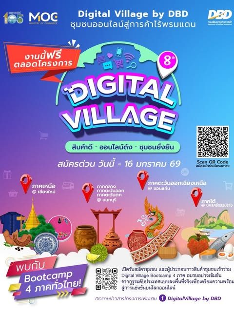 กองส่งเสริมวิสาหกิจชุมชน เชิญชวนเข้าร่วมโครงการ Digital Village by DBD “สินค้าดี ออนไลน์ดัง ชุมชนยั่…