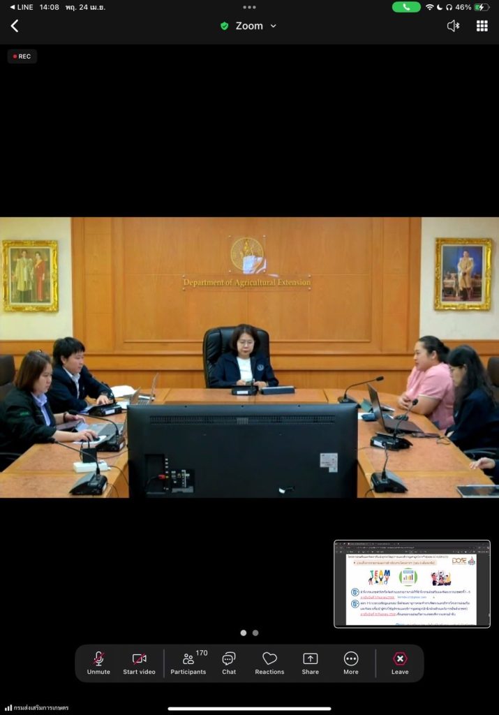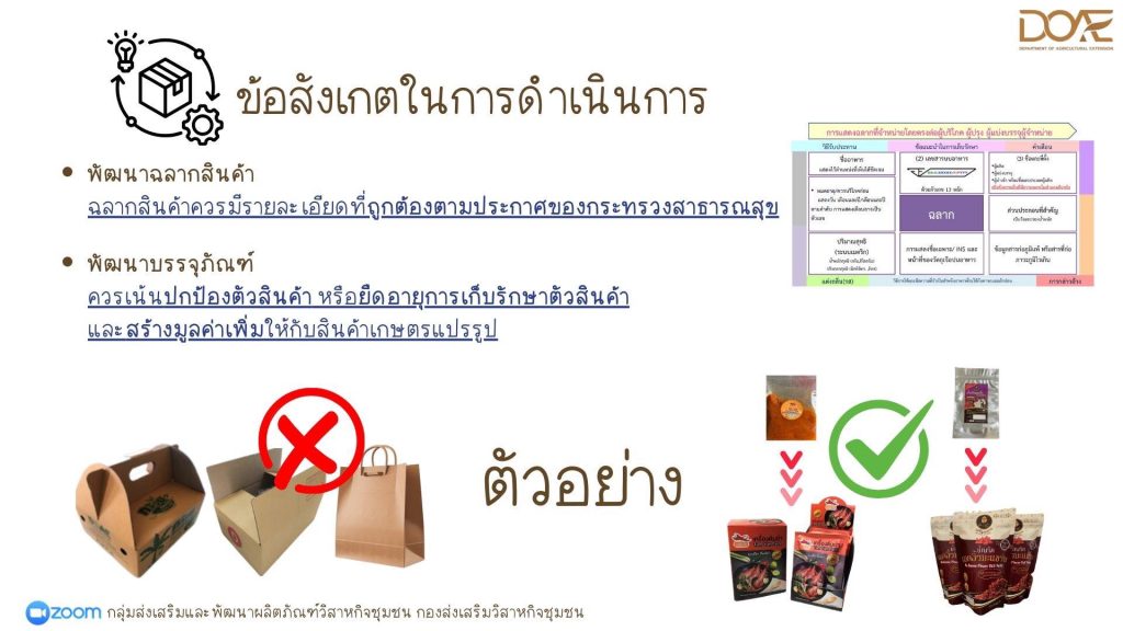 โดยมีเจ้าหน้าที่ผู้รับผิดชอบงานโครงการฯ ระดับจังหวัด/อำเภอ/เขต และเจ้าหน้าที่กลุ่มส่งเสริมและพัฒนาผลิตภัณฑ์วิสาหกิจชุมชน กองส่งเสริมการเกษตร ร่วมแลกเปลี่ยนข้อคิดเห็นในการดำเนินการโครงการฯ ดังกล่าว