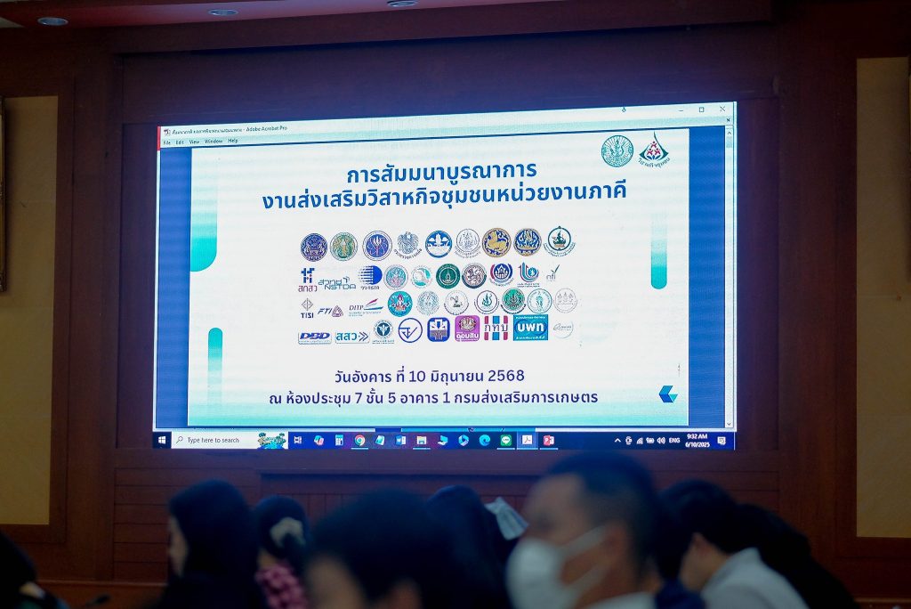 วันที่ 10 มิถุนายน 2568 นางวชิรา ไฝเจริญมงคล ผู้อำนวยการกองส่งเสริมวิสาหกิจชุมชน พร้อมด้วยผู้อำนวยการกลุ่ม และเจ้าหน้าที่กองส่งเสริมวิสาหกิจชุมชน ดำเนินการสัมมนาบูรณาการ งานส่งเสริมวิสาหกิจชุมชนหน่วยงานภาคี ณ ห้องประชุม 7 ชั้น 5 อาคาร 1 กรมส่งเสริมการเกษตร เพื่อสร้างความรู้ความเข้าใจในเรื่องการบริหารจัดการวิสาหกิจชุมชน ทั้งด้านการบริหารงานบุคคล การบัญชี การจัดหาทุน การตลาด และความรู้ด้านภาษีที่เหมาะสมกับลักษณะและศักยภาพของธุรกิจ โดยจัดกลุ่มการสัมมนาบูรณาการงานส่งเสริมวิสาหกิจชุมชนหน่วยงานภาคี โดยมีนายรพีทัศน์ อุ่นจิตตพันธ์ รองอธิบดีกรมส่งเสริมการเกษตร เป็นประธานเปิดการสัมมนาบูรณาการ