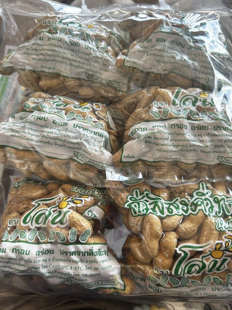 ณ วิสาหกิจชุมชนกลุ่มแม่บ้านเกษตรกรบ้านหนองโนกุดจับ อำเภอกุดจับ จังหวัดอุดรธานี ผลิตภัณฑ์ที่เข้าร่วมโครงการฯ คือ ถั่วคั่วทราย