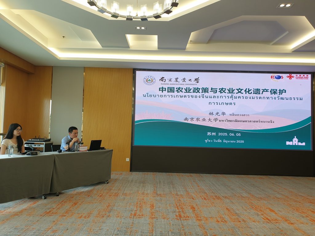 ระหว่างวันที่ 28 พฤษภาคม – 17 มิถุนายน 2568 กองส่งเสริมวิสาหกิจชุมชน กรมส่งเสริมการเกษตร ได้มอบหมายให้นางสาวนันทมาส ทองปลี ผู้อำนวยการกลุ่มส่งเสริมและพัฒนาเกลือทะเลไทย และนางสาวสุพิชา วัฒนปรีชานนท์ นักวิชาการส่งเสริมการเกษตรชำนาญการ กลุ่มส่งเสริมและพัฒนาการท่องเที่ยวชุมชน เข้าร่วมการสัมมนาการจัดการและคุ้มครองมรดกทรัพย์สินทางวัฒนธรรมทางการเกษตรในประเทศไทย ณ สาธารณรัฐประชาชนจีน
