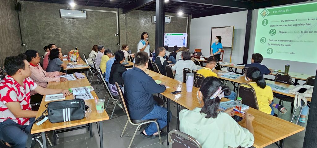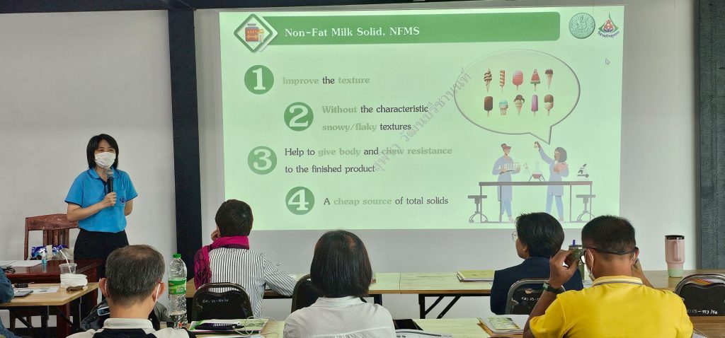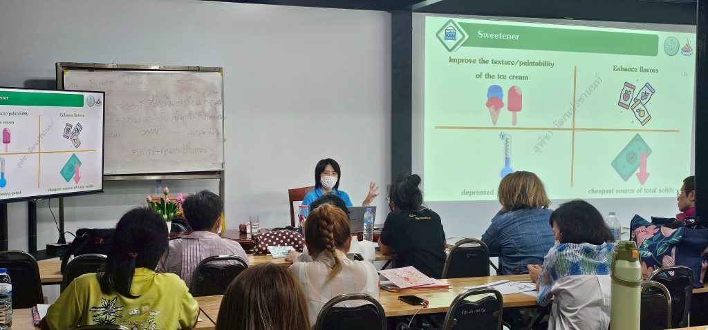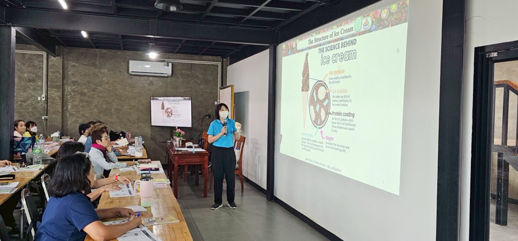 โดยเป็นการบรรยายให้ความรู้ในหัวข้อ “ประวัติความเป็นมาของไอศกรีม” “วิทยาศาสตร์การอาหารในไอศกรีม” “มูลค่าการตลาดผลิตภัณฑ์ไอศกรีม” และ “ระบบคุณภาพและความปลอดภัยในอาหาร”