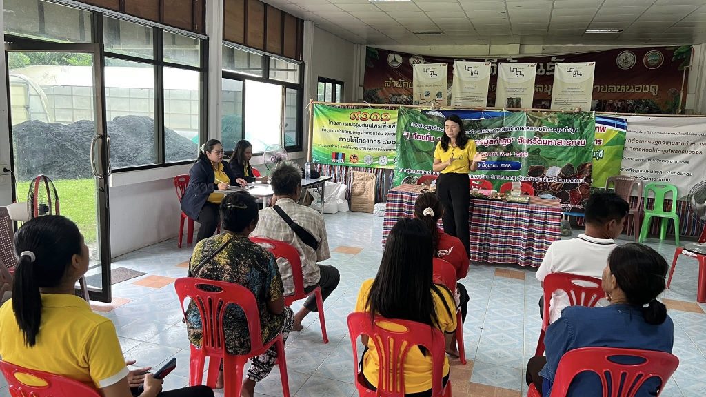 ในการติดตามงานวิสาหกิจชุมชนจังหวัดมหาสารคาม ครั้งนี้ ร่วมกับเจ้าหน้าที่สำนักงานเกษตรจังหวัดมหาสารคาม และเจ้าหน้าที่สำนักงานเกษตรอำเภอนาดูน ให้ข้อมูลการดำเนินงานกิจกรรมรวมทั้งปัญหาและอุปสรรคของวิสาหกิจชุมชน