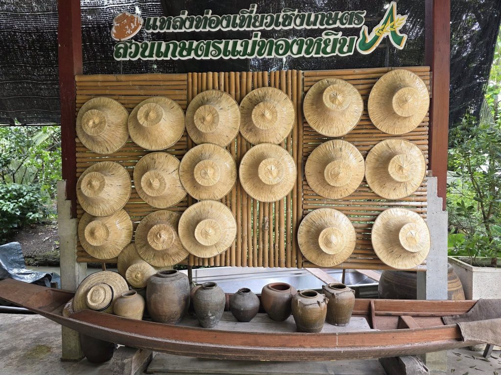 โดยวิสาหกิจชุมชนกลุ่มท่องเที่ยวสวนเกษตรแม่ทองหยิบ ตั้งอยู่ในพื้นที่อำเภอดำเนินสะดวก เป็นสวนเกษตรที่ปลูกไม้ผลหลากหลายชนิด อาทิ มะพร้าว มะนาว ชมพู่ทับทิมจันทร์ รวมถึงพืชผักสวนครัวต่างๆ ที่เปิดรับนักท่องเที่ยวให้มาสัมผัสประสบการณ์การทำเกษตรแบบท้องร่อง โดยมีกิจกรรมนั่งเรือเที่ยวชมสวนอย่างใกล้ชิด พร้อมทั้งได้ลิ้มรสขนมพื้นบ้าน น้ำสมุนไพร และผลไม้สดตามฤดูกาล อีกทั้งยังมีการพาล่องเรือชมวัดโชติทายการาม ตลาดน้ำเหล่าตั๊กลักและสถานที่ใกล้เคียงอีกด้วย