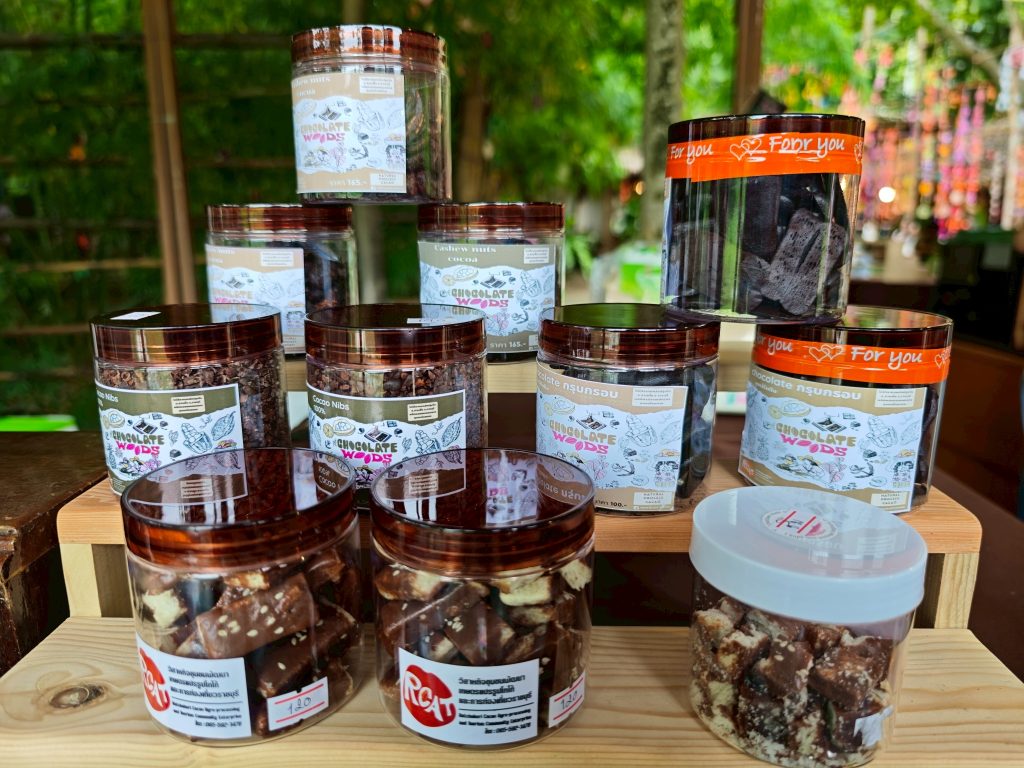 ตลาดโอ๊ะป่อยเป็นแหล่งรวมสินค้าและกิจกรรมที่หลากหลาย โดยมีการนำสินค้าของวิสาหกิจชุมชนในพื้นที่มาจำหน่ายในตลาดด้วย โดยเฉพาะอย่างยิ่งจากวิสาหกิจชุมชนพัฒนาเกษตรแปรรูปโกโก้และการท่องเที่ยวราชบุรี ที่นำผลิตภัณฑ์โกโก้แปรรูปคุณภาพสูง เช่น ช็อกโกแลต ผงโกโก้ และขนมโกโก้หลากหลายชนิดมาจำหน่าย