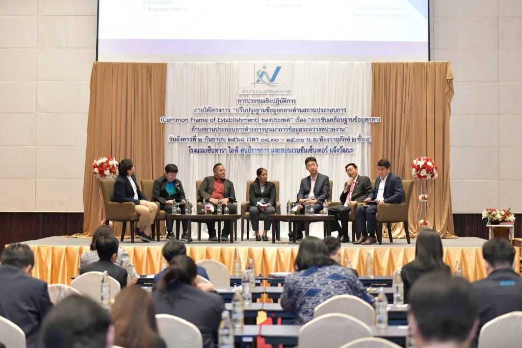 นางวชิรา ไฝเจริญมงคล ผู้อำนวยการกองส่งเสริมวิสาหกิจชุมชน มอบหมายให้นายสิทธิชัย เจริญกิติศัพท์ ผู้อำนวยการกลุ่มทะเบียนและสารสนเทศวิสาหกิจชุมชน เข้าร่วมประชุมเชิงปฏิบัติการภายใต้โครงการ“ปรับปรุงฐานข้อมูลกลางด้านสถานประกอบการ (Common Frame of Establishment) ของประเทศ” เรื่อง การขับเคลื่อนฐานข้อมูลกลางด้านสถานประกอบการด้วยการบูรณาการข้อมูลระหว่างหน่วยงาน ของสำนักงานสถิติแห่งชาติ และร่วมเสวนาพร้อมนำเสนอข้อมูลของหน่วยงานกับผู้แทนจาก 6 หน่วยงาน ได้แก่ กรมพัฒนาธุรกิจการค้า สำนักงานประกันสังคม สำนักงานปลัดกระทรวงอุตสาหกรรม กรมโรงงานอุตสาหกรรม การนิคมอุตสาหกรรมแห่งประเทศไทยและกรมส่งเสริมการเกษตร ณ โรงแรมเซ็นทารา ไลฟ์ ศูนย์ราชการ และคอนเวนชันเซ็นเตอร์ แจ้งวัฒนะ