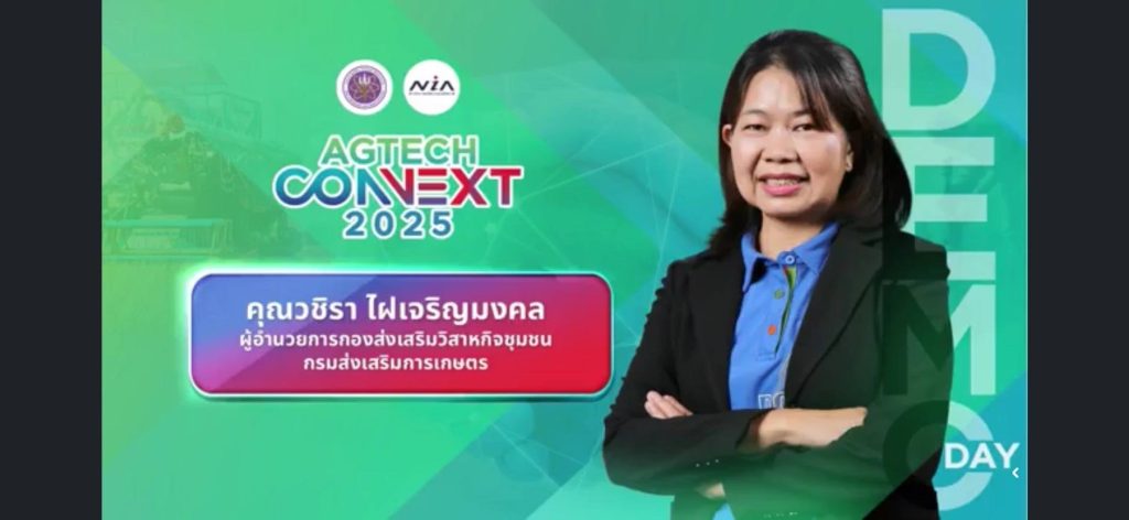 นางวชิรา ไฝเจริญมงคล ผู้เชี่ยวชาญด้านส่งเสริมวิสาหกิจชุมชน ปฏิบัติหน้าที่ผู้อำนวยการกองส่งเสริมวิสาหกิจชุมชน ร่วมเป็นกรรมการพิจารณาตัดสิน ในกิจกรรมนำเสนอผลทดสอบการใช้งานเทคโนโลยีและนวัตกรรมของกลุ่มเกษตรกรผู้ปลูกข้าว (Demo Day) ภายใต้โครงการ AgTech Connext 2025 ของสำนักงานนวัตกรรมแห่งชาติ ณ โรงแรม ทีเค พาเลซ แอนด์ คอนเวนชั่น กรุงเทพมหานคร