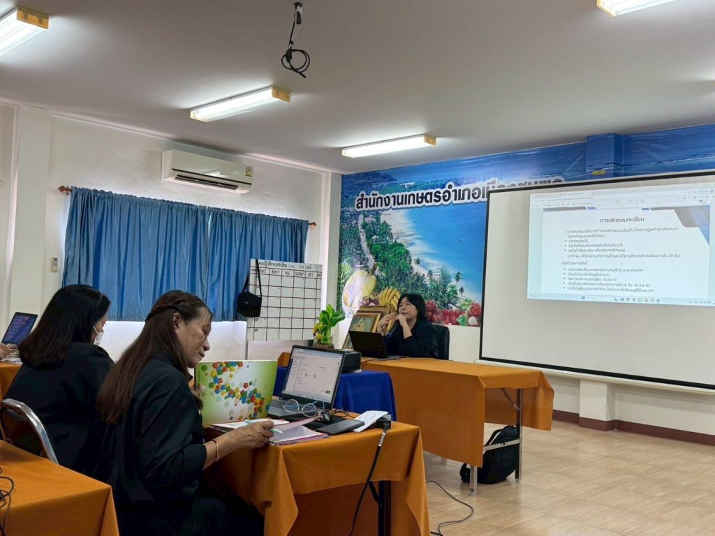 กลุ่มทะเบียนและสารสนเทศวิสาหกิจชุมชน กองส่งเสริมวิสาหกิจชุมชน ดำเนินการจัดอบรมเชิงปฏิบัติการการเพิ่มทักษะนายทะเบียนวิสาหกิจชุมชนในระดับจังหวัด ณ จังหวัดชุมพร โดยมีวัตถุประสงค์เพื่อพัฒนาทักษะให้กับนายทะเบียนวิสาหกิจชุมชมชน ผู้รับผิดชอบงานและเจ้าหน้าที่ผู้เกี่ยวข้อง มีความเข้าใจเกี่ยวกับกฎหมาย ระเบียบและขั้นตอนในการดำเนินงานอย่างถูกต้อง และพัฒนาทักษะเชิงปฏิบัติด้านดิจิทัลในการใช้ระบบสารสนเทศวิสาหกิจชุมชน พร้อมทั้งเสริมสร้างทักษะการสื่อสาร การให้คำปรึกษา เพื่อยกระดับบทบาทนายทะเบียนให้สามารถพัฒนาวิสาหกิจชุมชนในพื้นที่ได้ โดยมีผู้เข้าร่วมอบรมฯได้แก่ เกษตรอำเภอ(นายทะเบียน) ผู้รับผิดชอบงานวิสาหกิจชุมชน และเจ้าหน้าที่ผู้เกี่ยวข้อง จำนวน 24 ราย ณ จังหวัดชุมพร