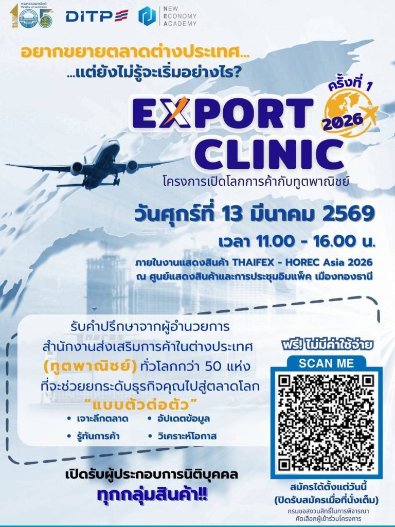 ประชาสัมพันธ์ให้กับวิสาหกิจชุมชนที่เป็นผู้ประกอบการที่ต้องการรับคำปรึกษาจากผู้อำนวยการสำนักงานส่งเสริมการค้าในต่างประเทศ (ทูตพาณิชย์) ทั่วโลกกว่า 50 แห่ง ที่จะช่วยยกระดับธุรกิจของคุณไปสู่ตลาดโลกแบบตัวต่อตัว