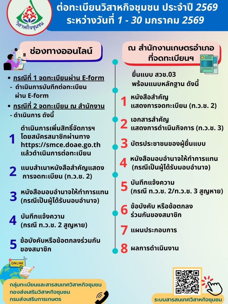 กองส่งเสริมวิสาหกิจชุมชนประชาสัมพันธ์การต่อทะเบียนวิสาหกิจชุมชน ประจำปี 2569